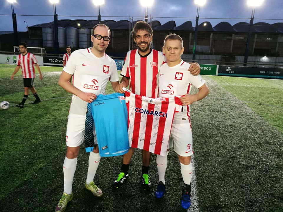 Nim zaczęliśmy grać (w nocy z wtorku na środę miejscowego czasu, w Polsce była wtedy trzecia nad ranem) doszło do wymiany uprzejmości. Dzięki staraniom Czarka Olbrychta i błyskawicznej reakcji trenera Probierza (wielkie dzięki!) mogliśmy naszym urugwajskim kolegom wręczyć oryginalną koszulkę „Pasów” (Michała Helika) z podpisami zawodników krakowskiego zespołu. Rywale byli wniebowzięci, ale na boisku walka trwała na całego. – Genialna taktyka, żelazna konsekwencja, inteligencja na boisku, team spirit… To nie mogło się inaczej skończyć – napisał po meczu na Twitterze Czarek.