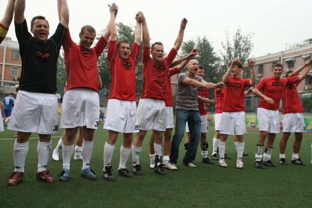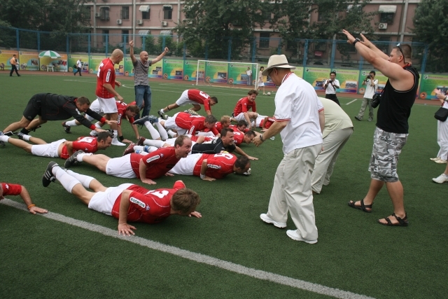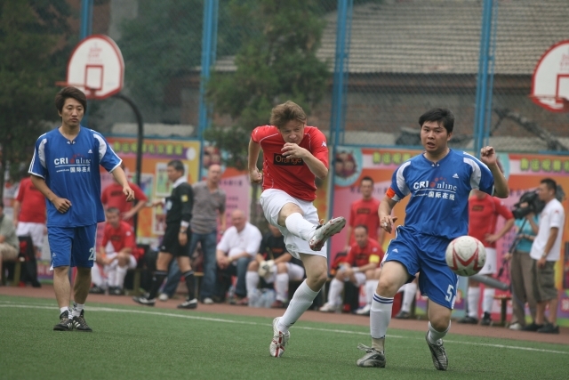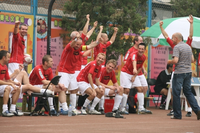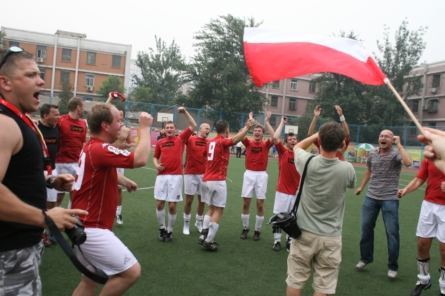 Przy stanie 0-0 w pierwszej połowie Rafał Dębiński nie wykorzystał rzutu karnego. Jeszcze przed przerwą sędzia – jak najbardziej słusznie – podyktował rzut karny dla rywali. Chińczycy zamienili go na gola. Druga połowa należała już do nas. Wygraliśmy 4-1. Wszystkie bramki strzelali Robertowie: Hirsch „ustrzelił” klasyczny hat-trick, jedną bramkę dołożył redaktor Zieliński – głową po rzucie rożnym.