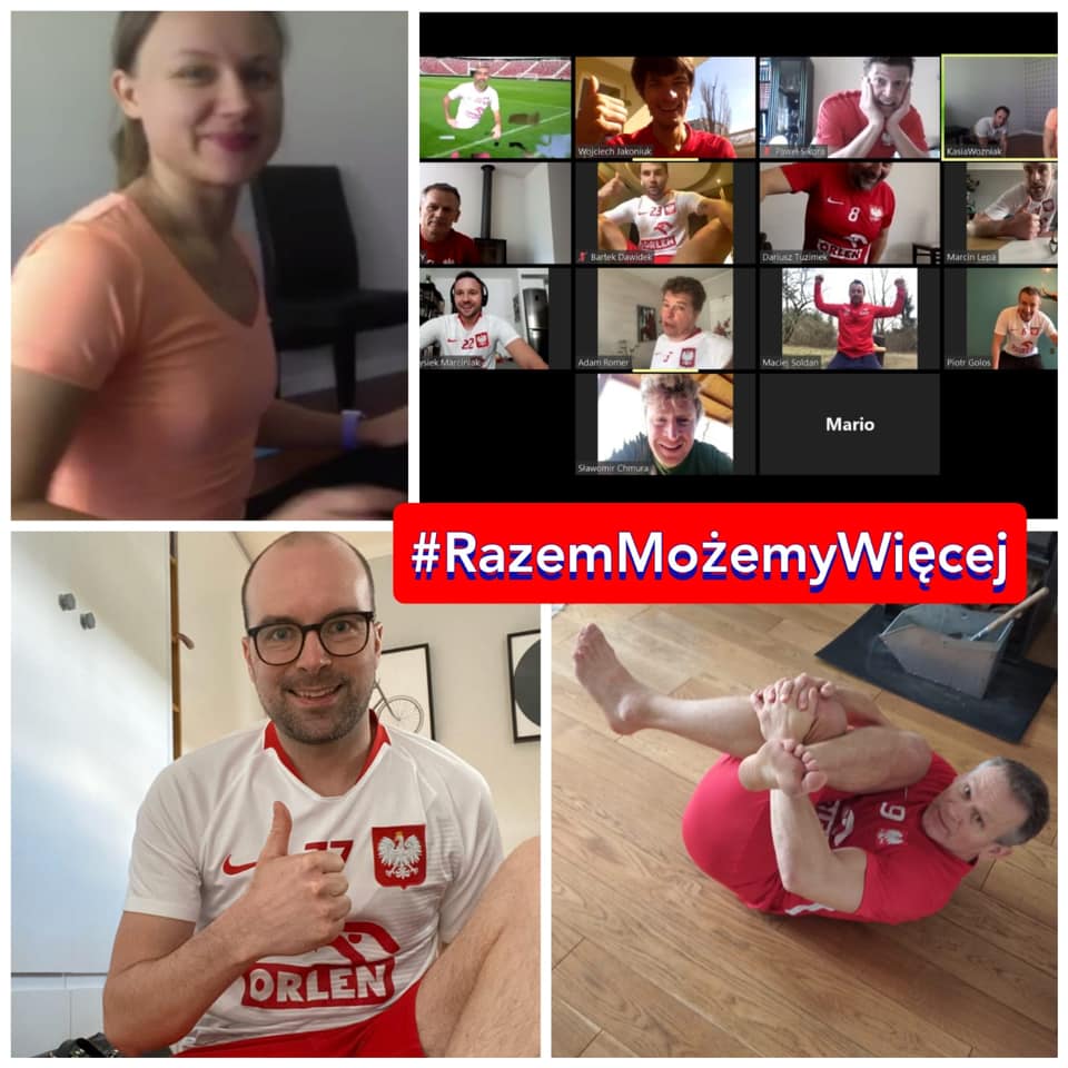 Czerpiemy z najlepszych wzorców, korzystamy z najnowszych technologii. W czasie pandemii, tak jak zawodowcy z Bundesligi i innych ligi Europy, zaczęliśmy treningi wirtualne. Zaczęło się od „nocnych Polaków rozmów” w sieci, które przerodziły się w pierwsze cyber zajęcia. Po tygodniu wewnętrznych testów, które okazały się sukcesem, w Wielkim Tygodniu postanowiliśmy zaprosić gości. Zaczęliśmy od ćwiczeń z wicemistrzem świata w siatkówce z 2006 roku. Łukasz Kadziewicz dał nam mocno w kość i rozpalił wyobraźnię wyzwaniem – jak najwięcej pompek w godzinę. A później wysłał propozycję bazowego treningu idealnego na czas wirusa: