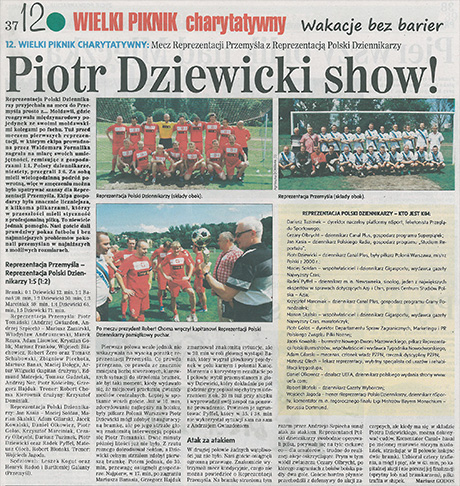 Samorządowcy Przemyśla – Reprezentacja Dziennikarzy 1:5. Bramki: Dziewicki 4, Marciniak. Skład: Kasia – Kubica, Gilarski, Olkowicz, Skalski – Gołos – Olbrycht, Sołdan, Tuzimek, Marciniak – Dziewicki.